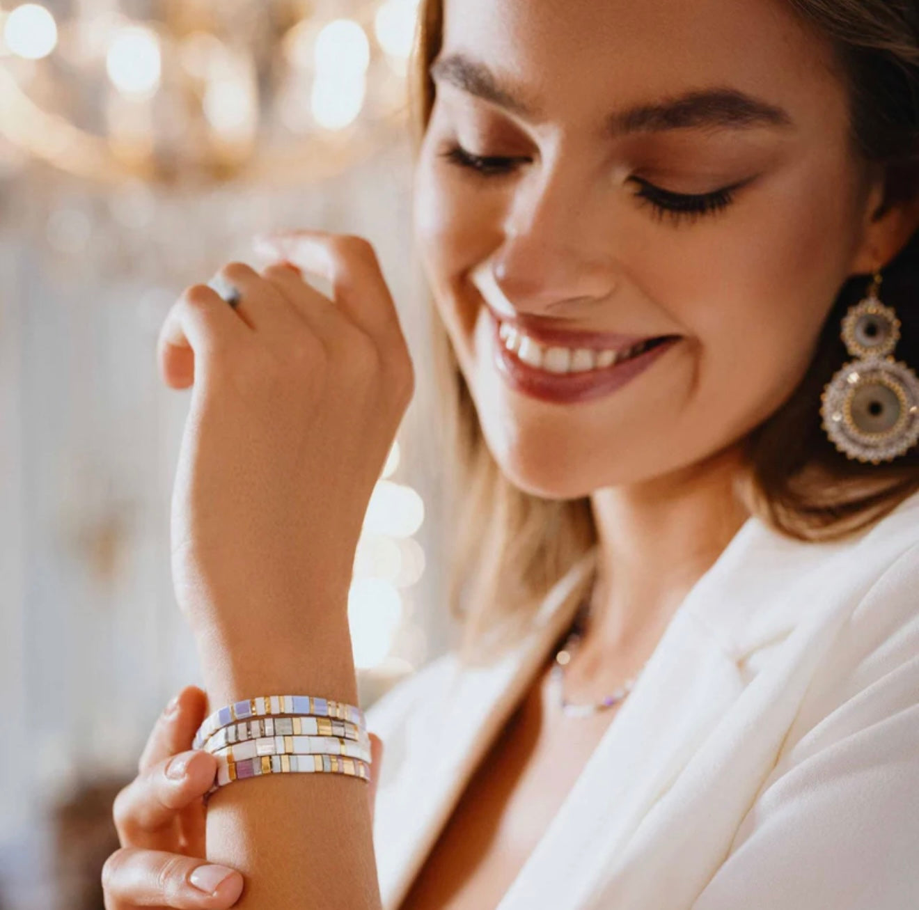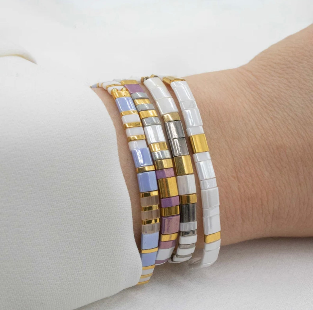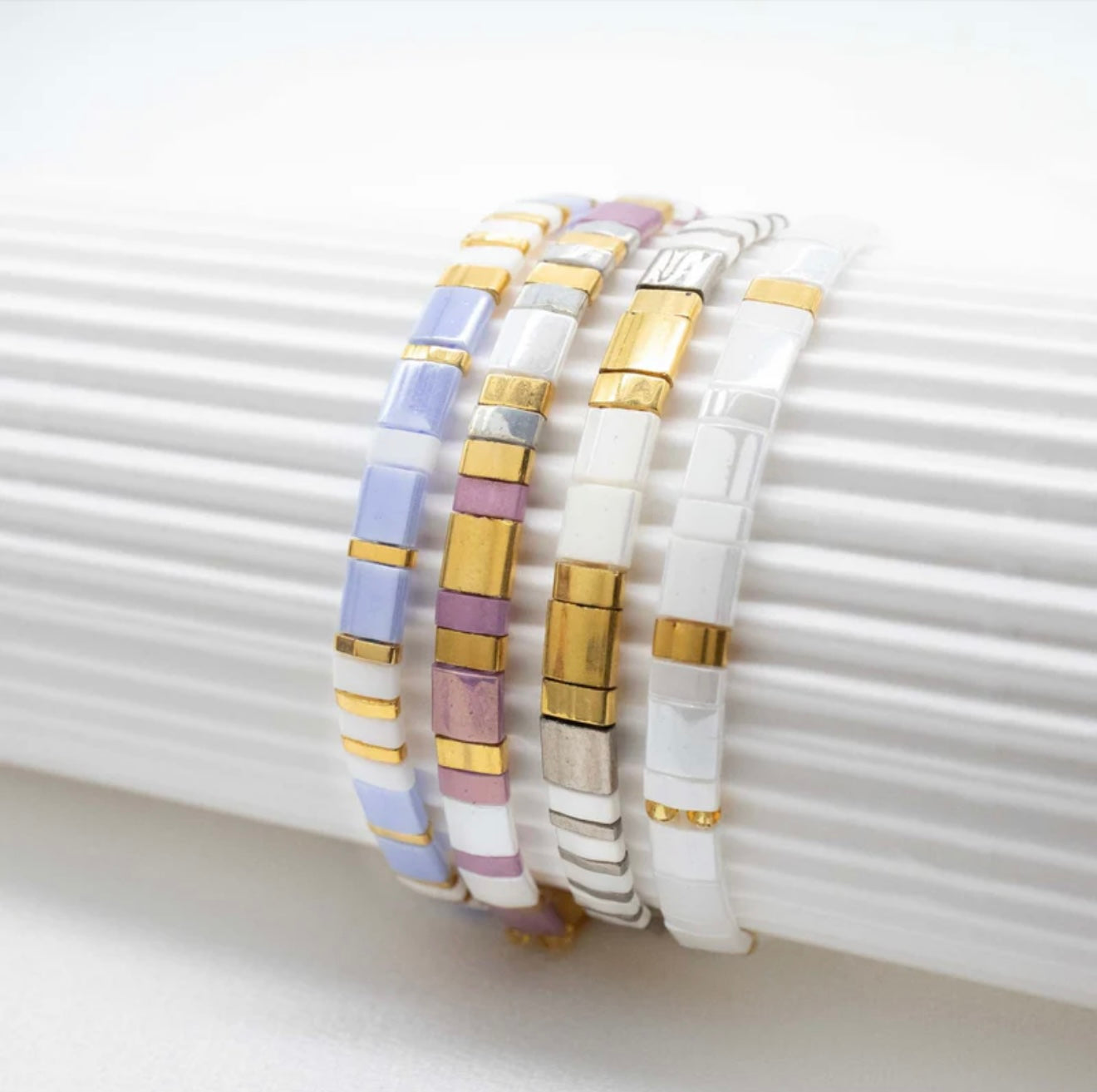 סט PASTEL | פסטל כולל ארבעה צמידים בעבודת יד, עשויים חרוזי מיוקי יפניים מקוריים, המשלבים גוונים פסטליים רכים ובהירים ליצירת מראה רגוע, נקי ועל־זמני.
